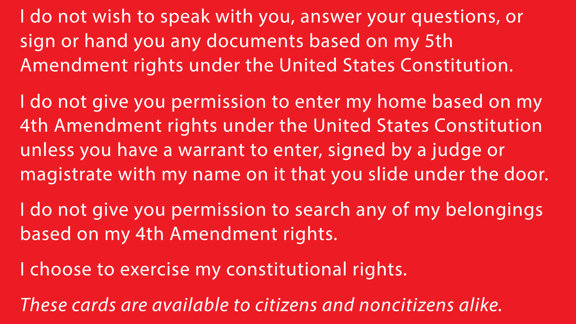 A Red Card is an educational tool created by immigrant rights groups to help people understand and protect their constitutional rights regardless of their immigration status.